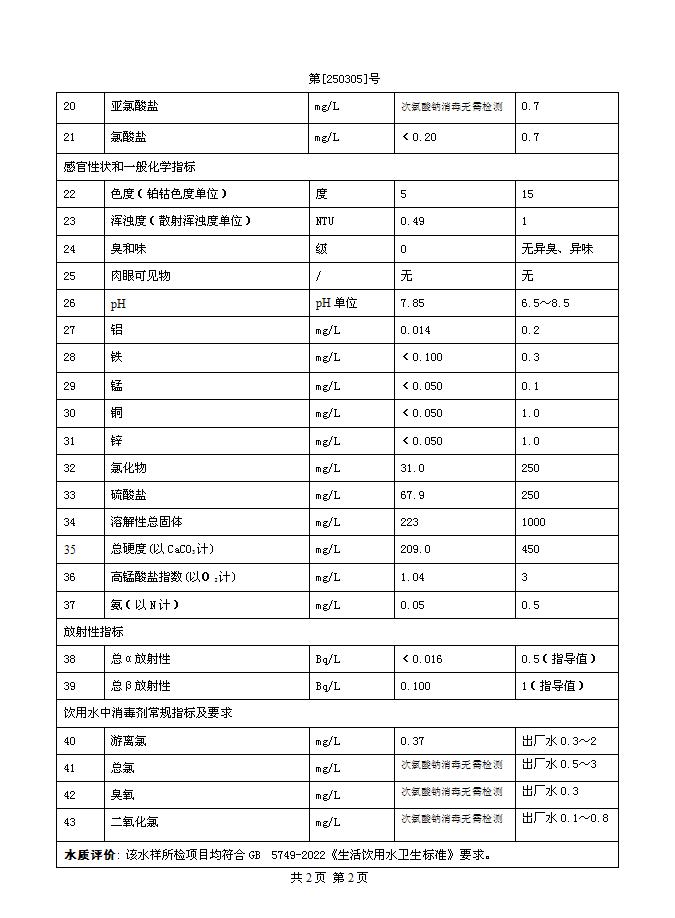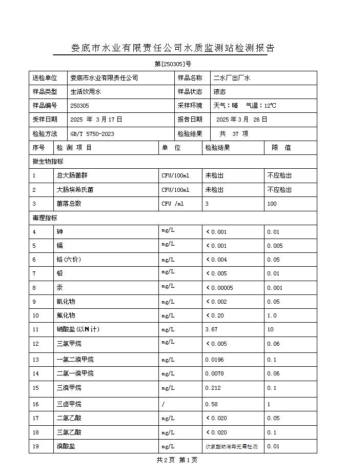 2025年3月二水廠(chǎng)出廠(chǎng)水水質(zhì)公告